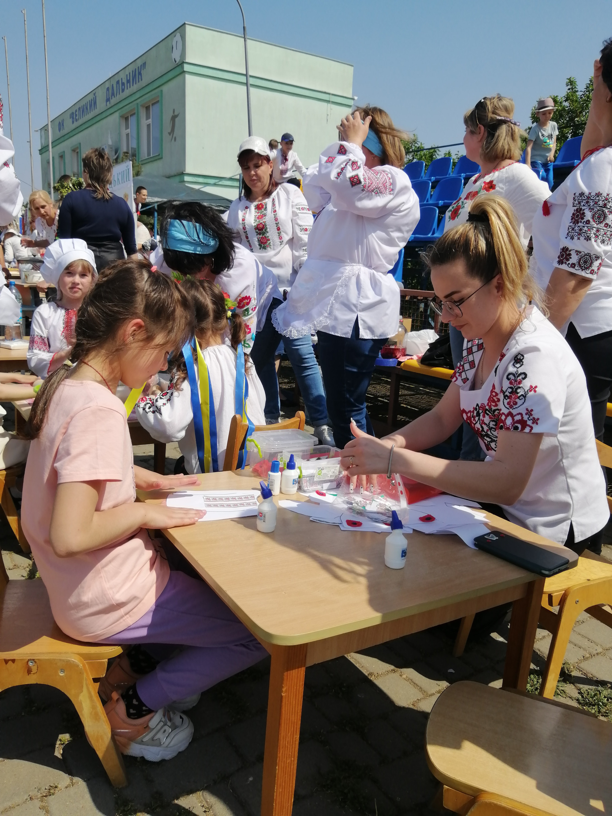 Гучно лунала патріотична музика, створюючи піднесений настрій присутнім. У яскравих вишиванках співали і танцювали дітки: у кожному номері прославляючи рідну Україну. А тим часом кожний бажаючий міг приєднатися до цікавих майстер-класів з ліплення вареників, плетіння віночка зі свіжих польових квітів, виготовлення прикрас в етнічному стилі, аплікацій, оберегів. Весь захід присутні мали можливість фотографуватися з ростовими ляльками Козаком і Козачкою, які викликали захоплення не тільки у малят, а і у їхніх батьків.
