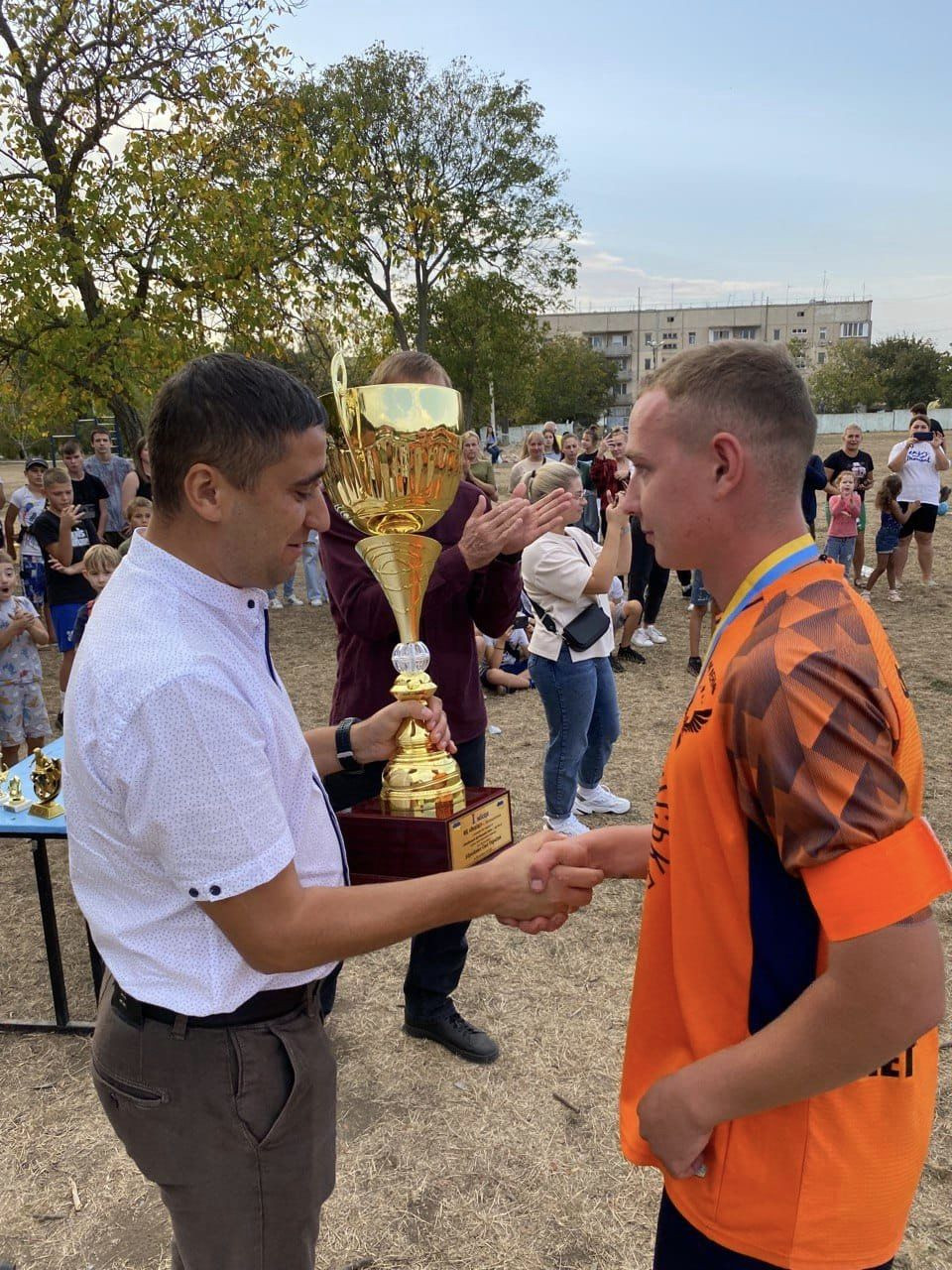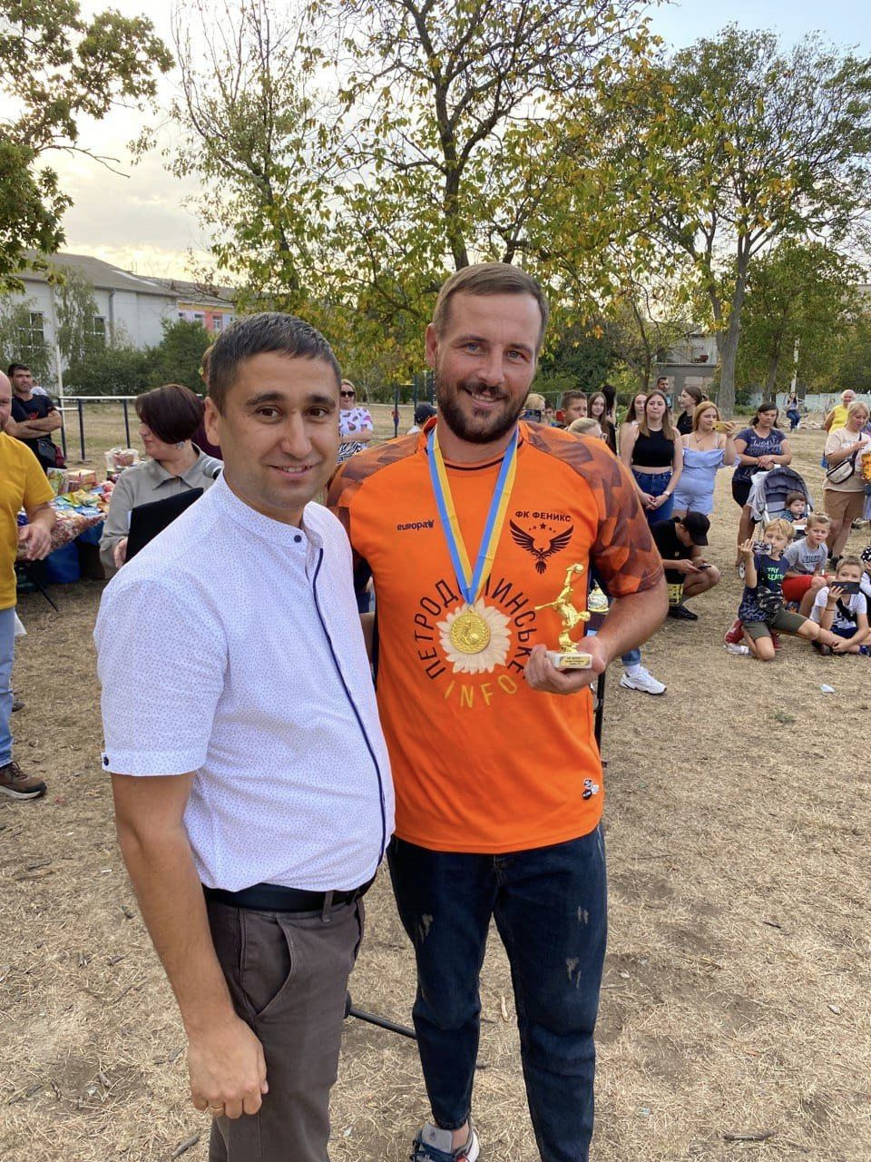 Голова Великодальницької громади Денис ТКАЧЕНКО та староста с.Петродолинське Олександр ГЛУШЕНКО разом з вболівальниками підтримали гравців ФК “Фенікс” та нагородили їх.