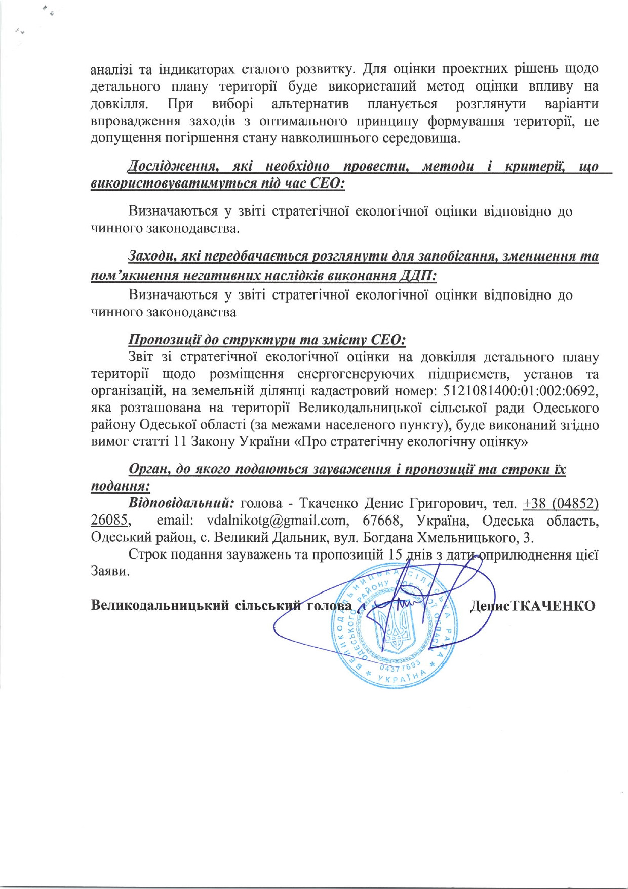 Заяви про визначення обсягу стратегічної екологічної оцінки доку