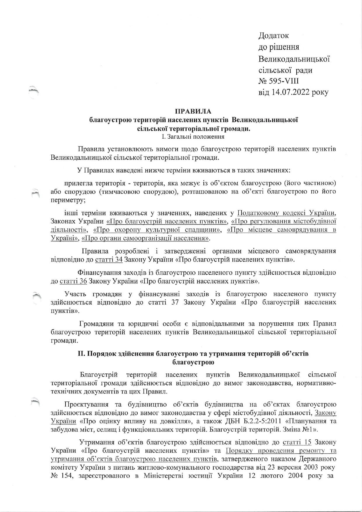 Про затвердження Правил благоустрою території населених пунктів Великодальницької сільської територіальної громади