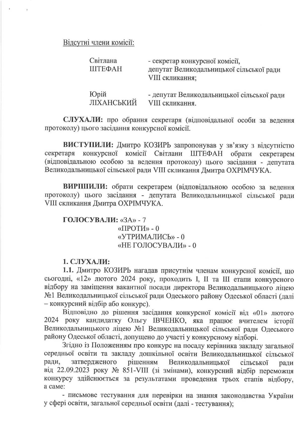 Протокол №2 засідання конкурсної комісії для проведення конкурсу на заміщення вакантної посади директора Великодальницького ліцею №1