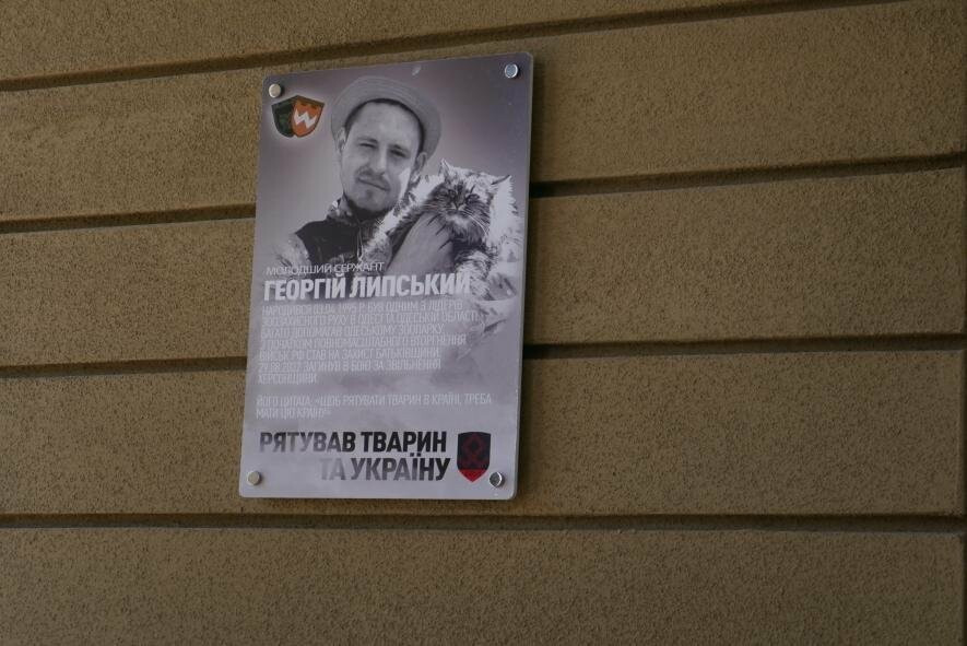 6 травня на вході до Одеського зоопарку відкрили пам'ятну табличку загиблому зооволонтеру та військовослужбовцю 126 бригади ТРО Георгію Липському.