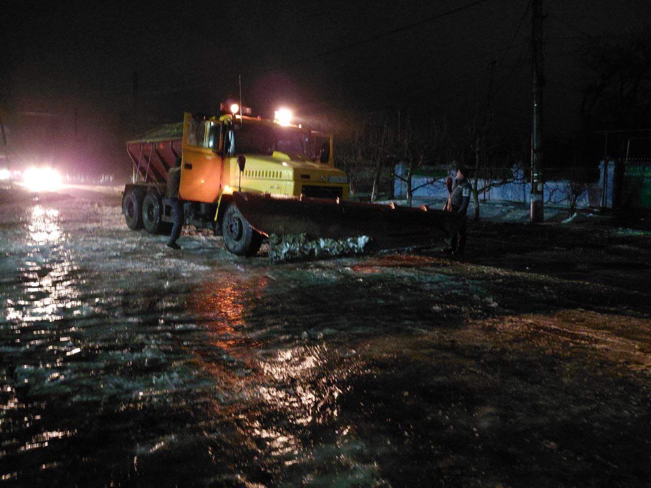 Через велику кількість опадів дороги швидко повторно намерзають, тому повністю завершити посипання всіх вулиць сьогодні можливості обмежені. Роботи будуть продовжені завтра.
