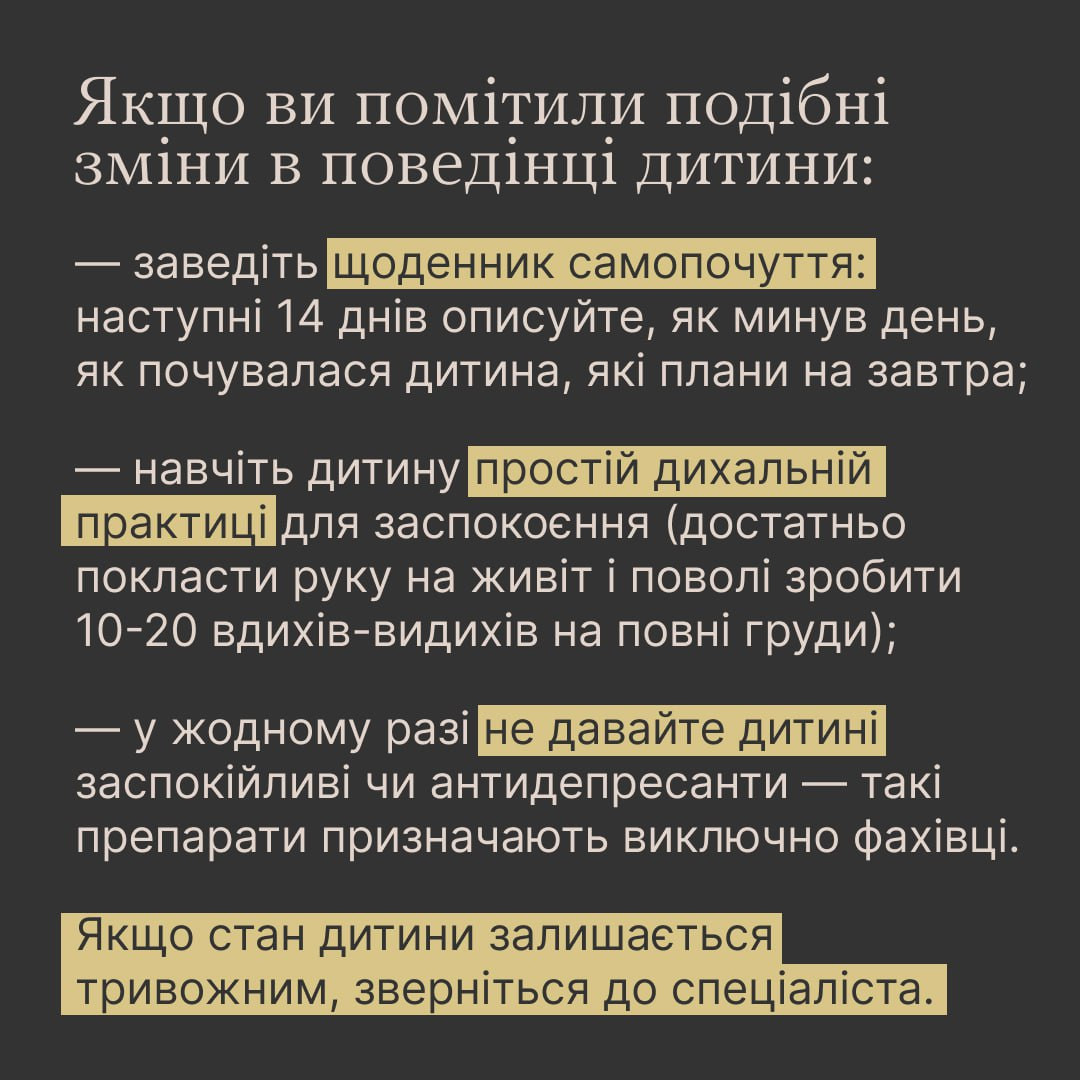 Тепер уявіть дитину, яка отримує той самий спектр емоцій, але не розуміє, що це і що з цим робити. Вона нервує, дратується, погано спить, втрачає апетит, а батьки нерідко списують це на чергову вікову кризу або невиспаність. Та зволікати не варто.