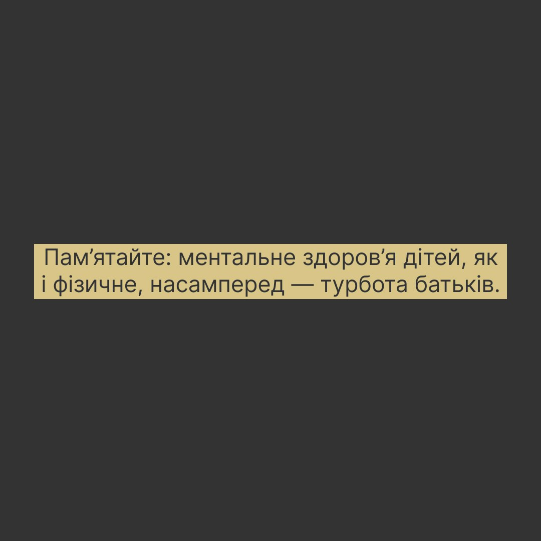 Педіатриня Юлія Крушельницька радить пильнувати малечу щодня і щогодини, адже симптоми, на які треба звернути увагу, дуже прості. Це не говорить, що за перших сліз треба бити на сполох — з легкою застудою ніхто не кладе дитину в лікарню, але й пневмонію чаєм вдома не лікують. Так само і з ментальним здоров’ям: іноді можуть допомогти тато з мамою, а іноді — лише спеціалісти.