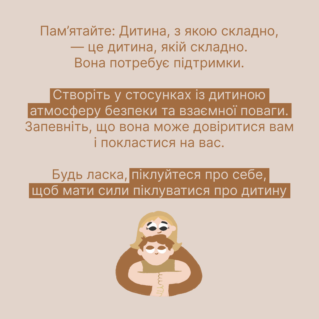 Дитина може повноцінно навчатися, лише коли їй безпечно і у неї є можливість відпочивати. Дайте їй цю можливість — не сваріть її за гірші оцінки чи помилки, не напосідайте зі шкільними завданнями та не навантажуйте дитину понад її можливості.