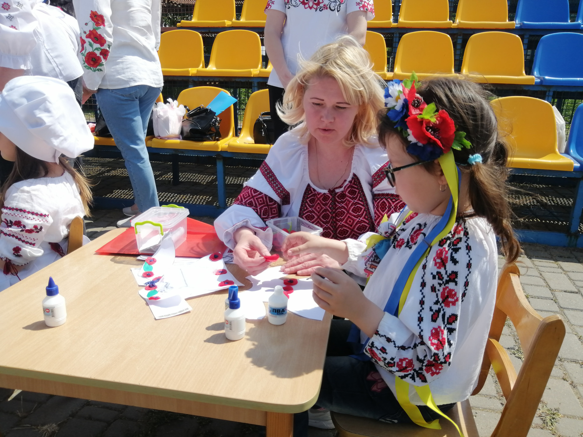 Гучно лунала патріотична музика, створюючи піднесений настрій присутнім. У яскравих вишиванках співали і танцювали дітки: у кожному номері прославляючи рідну Україну. А тим часом кожний бажаючий міг приєднатися до цікавих майстер-класів з ліплення вареників, плетіння віночка зі свіжих польових квітів, виготовлення прикрас в етнічному стилі, аплікацій, оберегів. Весь захід присутні мали можливість фотографуватися з ростовими ляльками Козаком і Козачкою, які викликали захоплення не тільки у малят, а і у їхніх батьків.