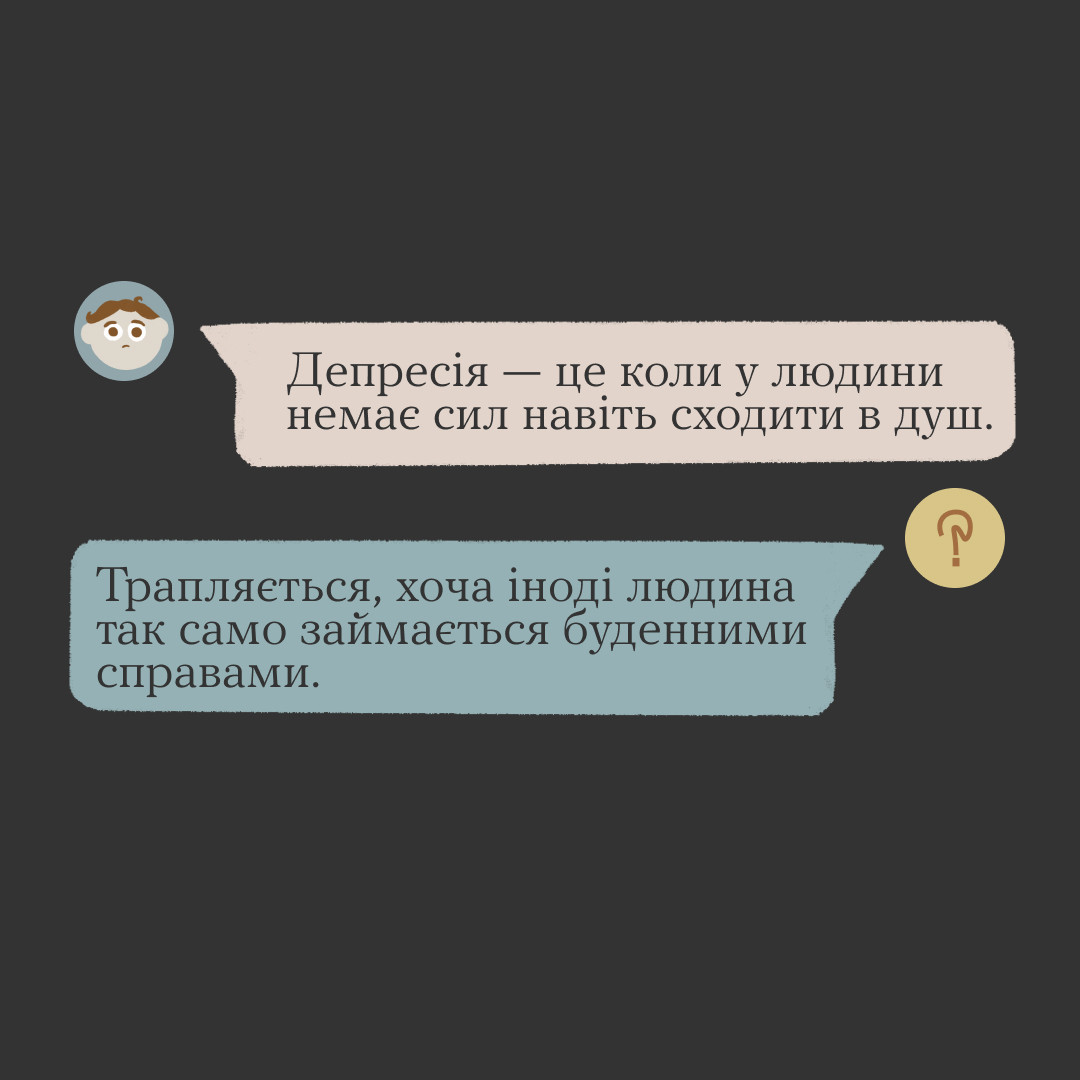 Депресія — це не сум, не пригніченість, не журба. Це не настрій чи стан. Це розлад, який отримав безліч «синонімів» через хибні уявлення про ментальне здоров’я.