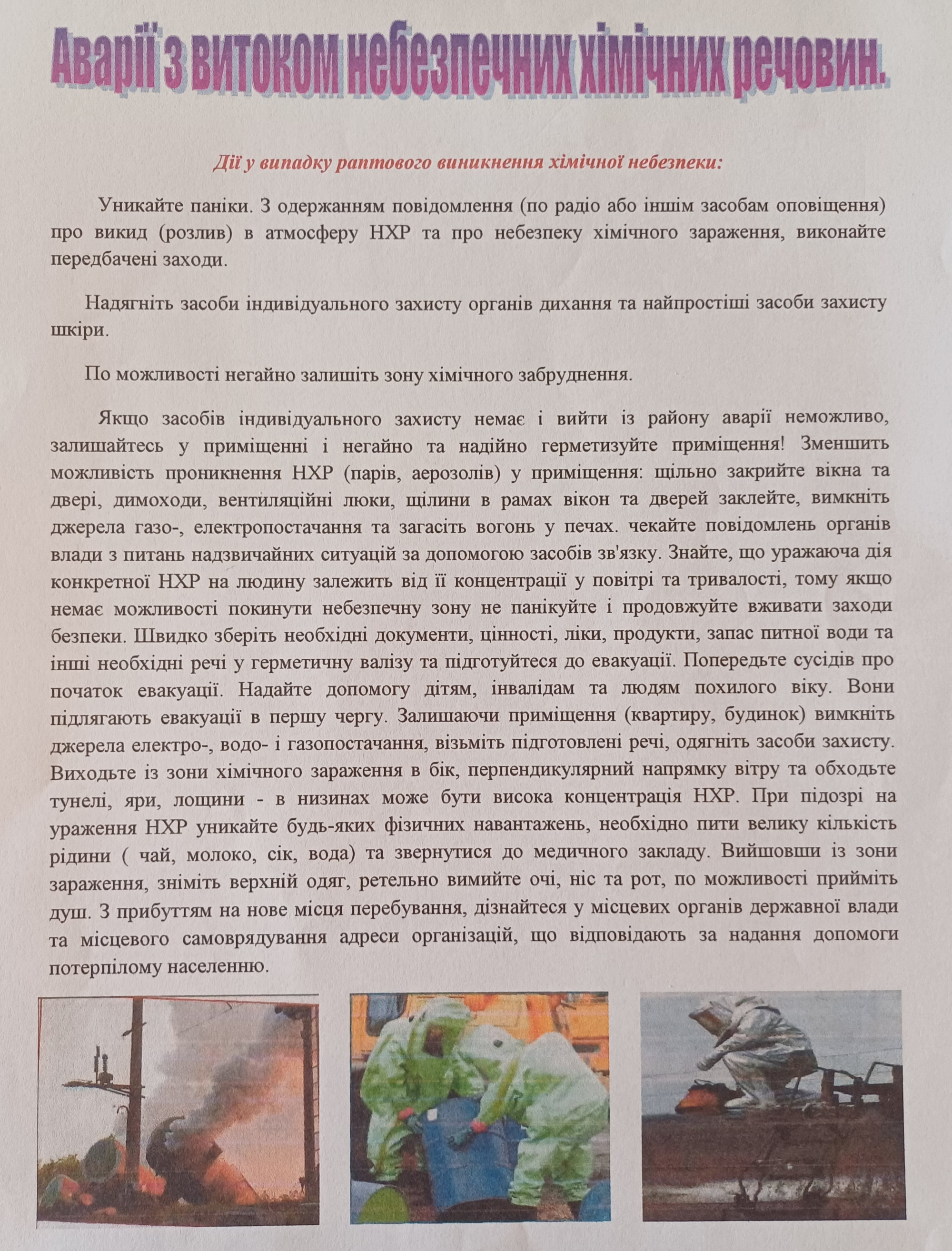 Дії у разі виникнення хімічної небезпеки