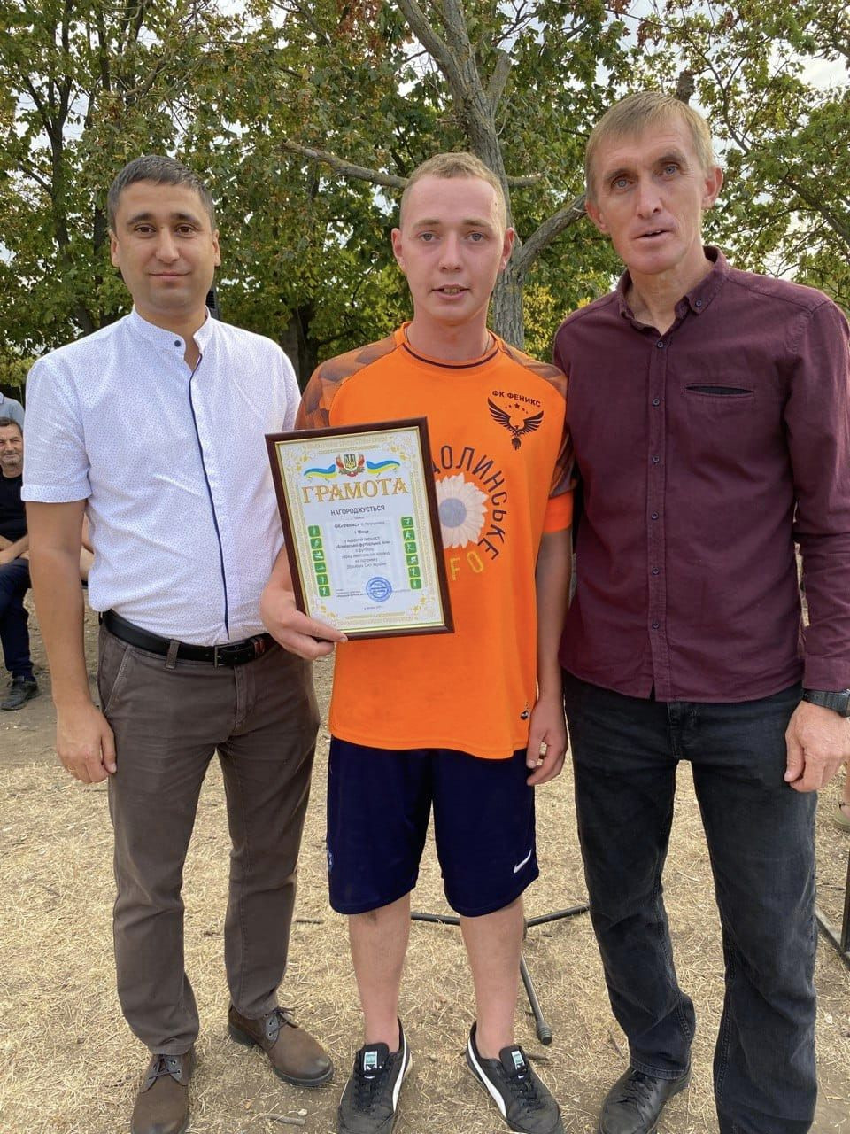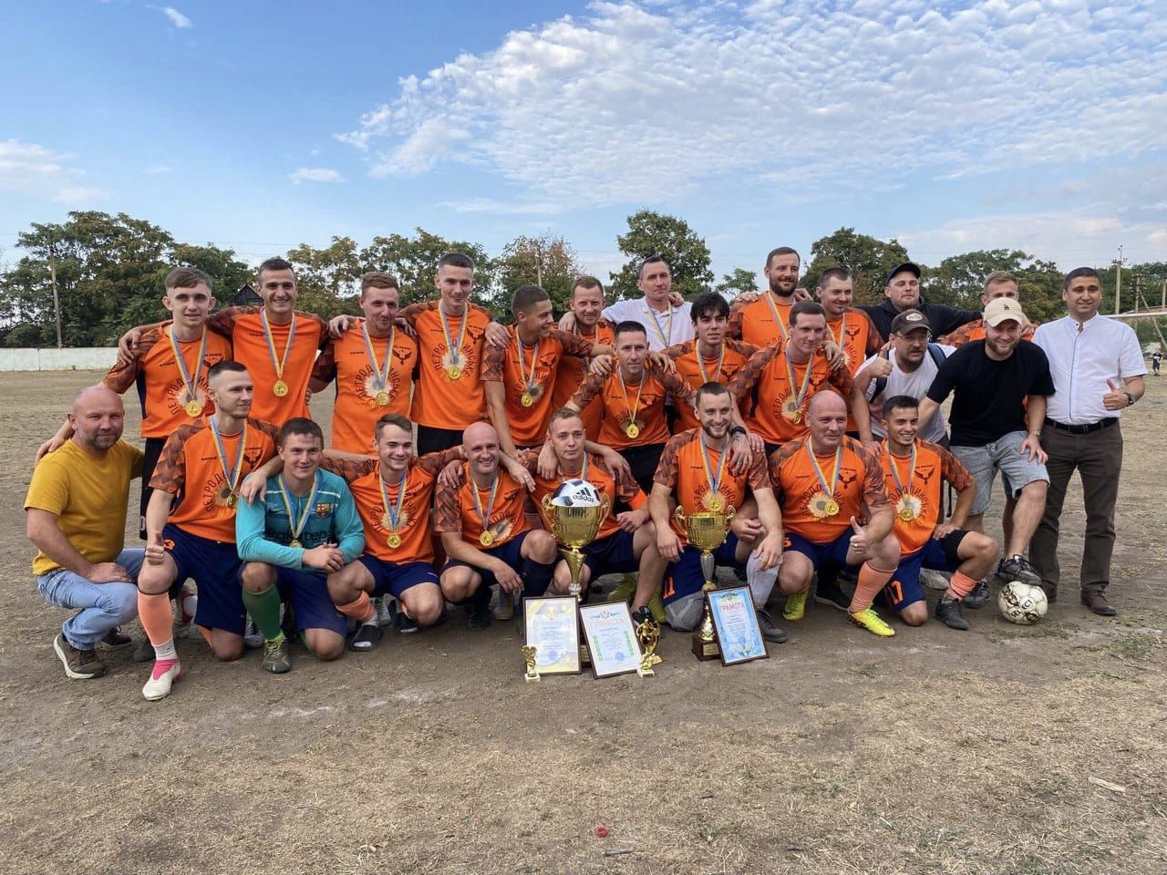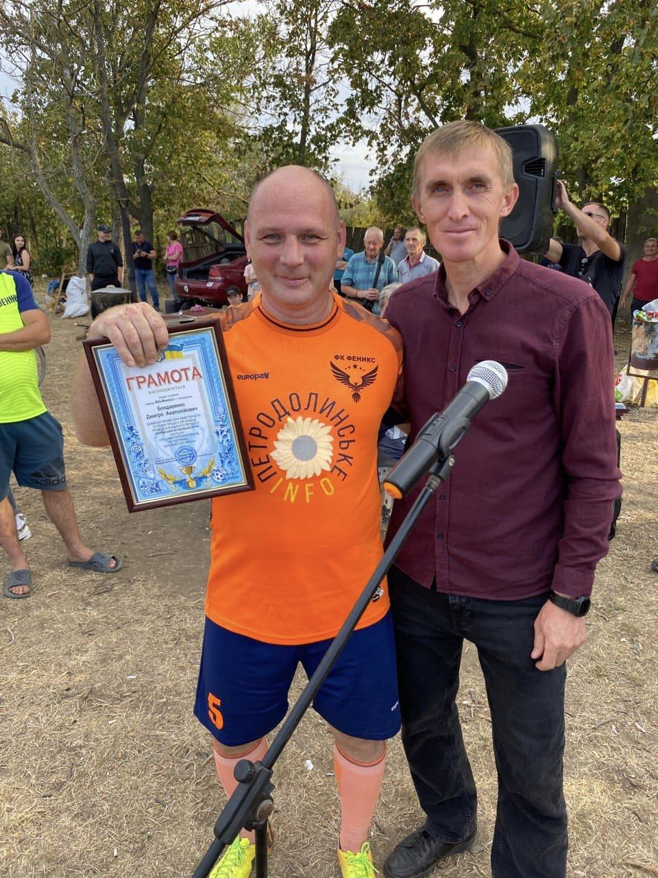 Голова Великодальницької громади Денис ТКАЧЕНКО та староста с.Петродолинське Олександр ГЛУШЕНКО разом з вболівальниками підтримали гравців ФК “Фенікс” та нагородили їх.