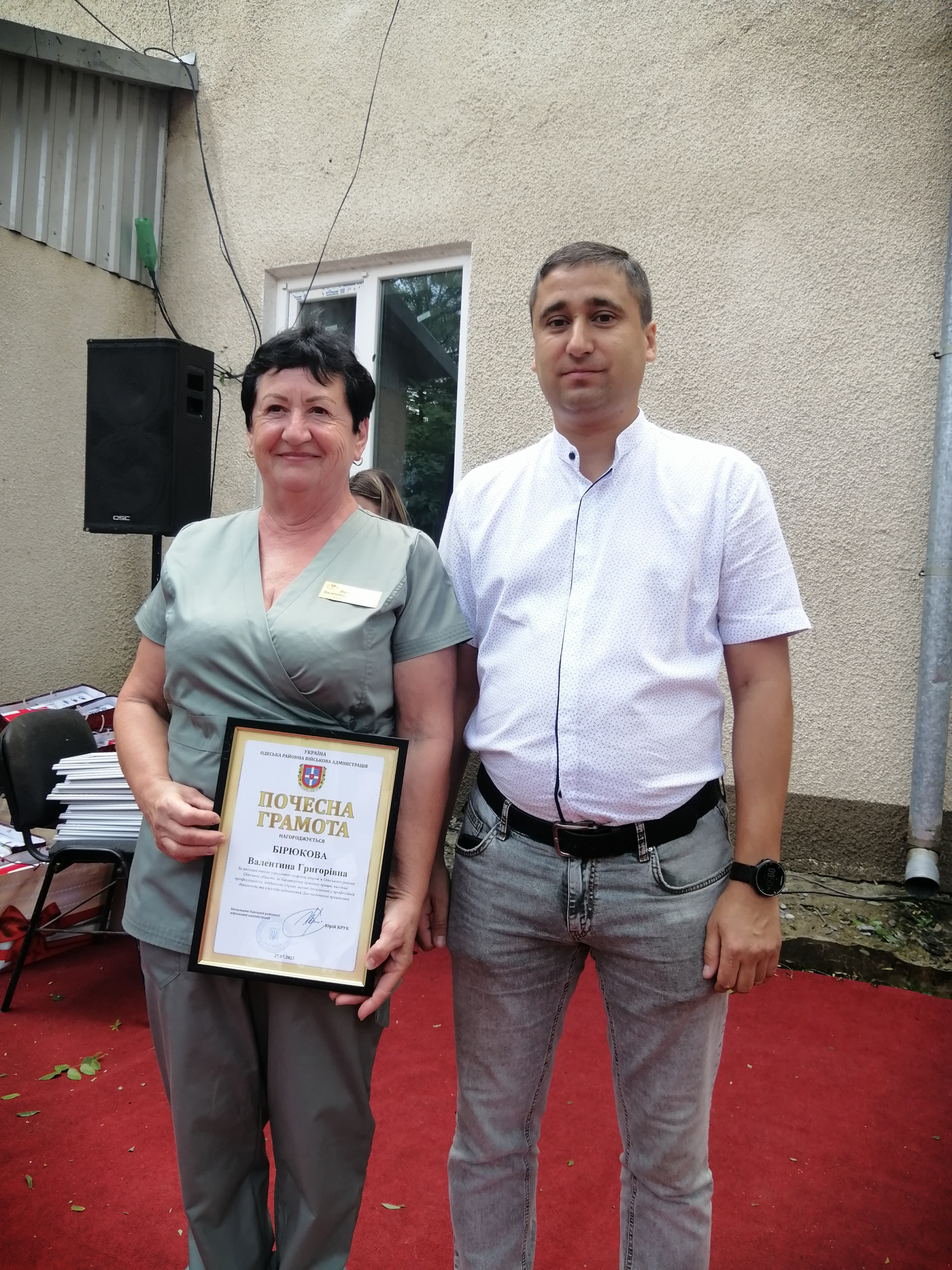 Денис Ткаченко нагородив медиків Почесними Грамотами від Одеської районної військової адміністрації та Подяками і подарунками від Великодальницької сільської ради.