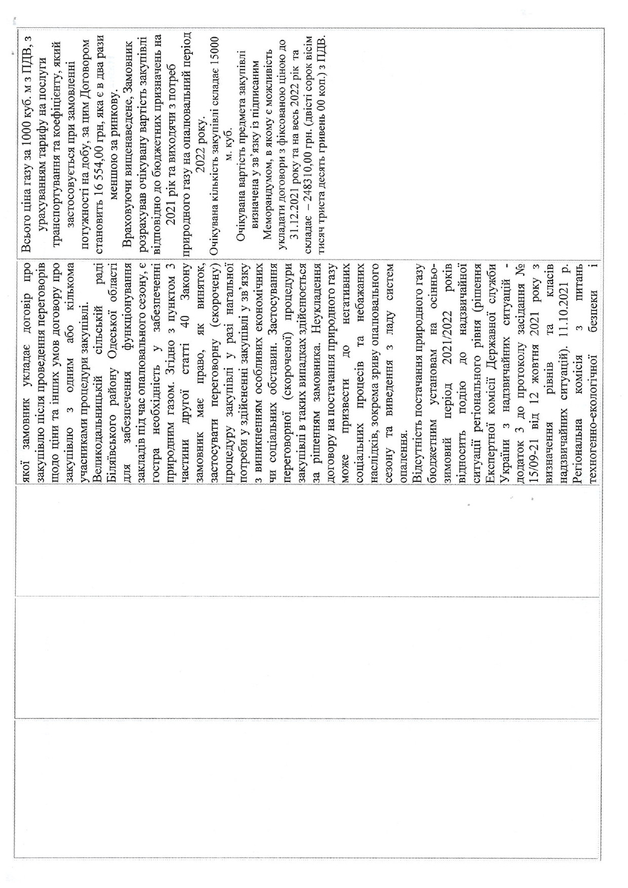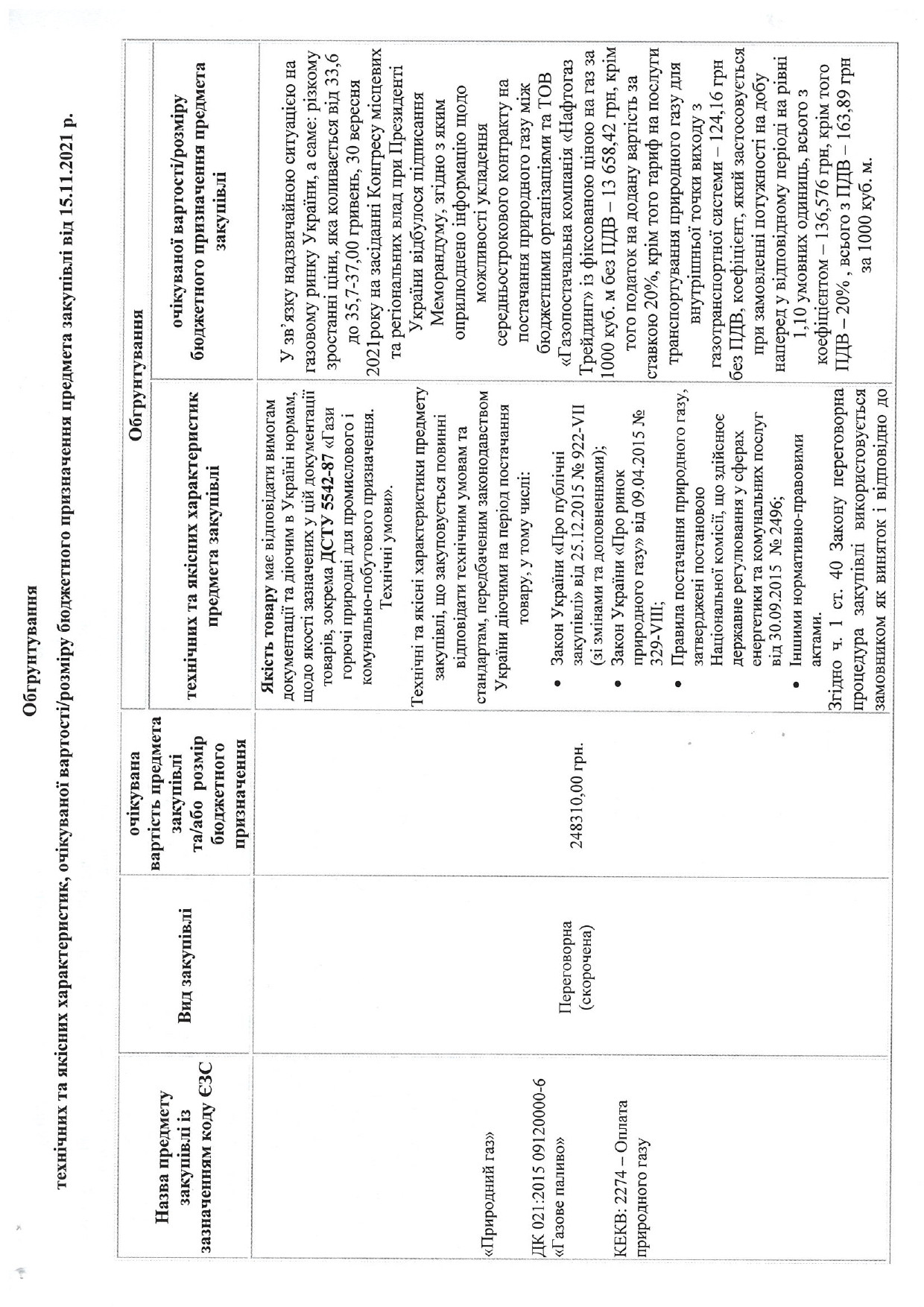 Обгрунтування технічних та якісних характеристик, очкікуваної вартості/розміру бюджетного призначення предмета закупівель від 15.11.2021 року