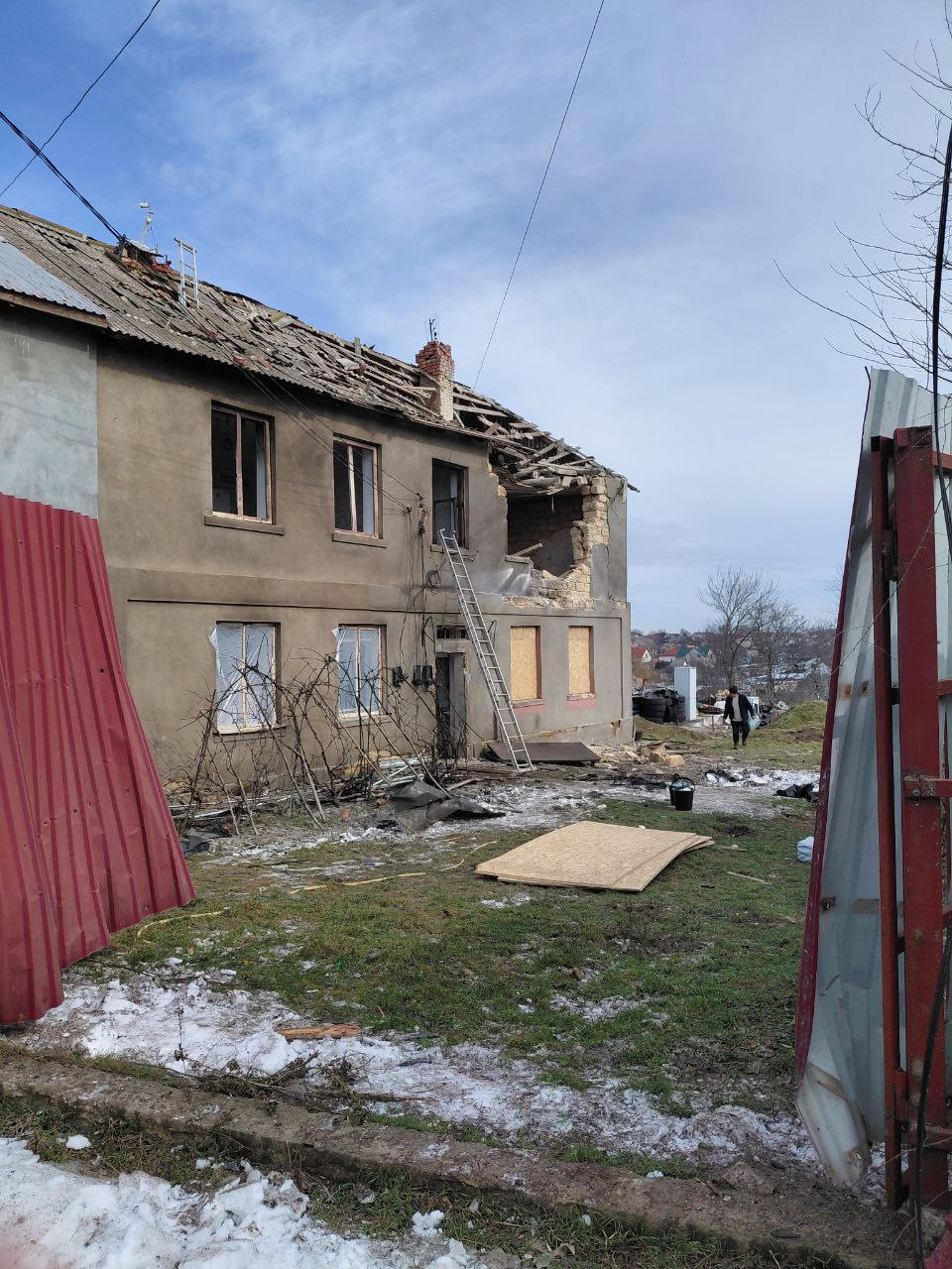 Внаслідок прильоту пошкоджено двоповерховий житловий будинок, у якому розташовано п’ять квартир. На щастя, служби оперативно відреагували на ситуацію.