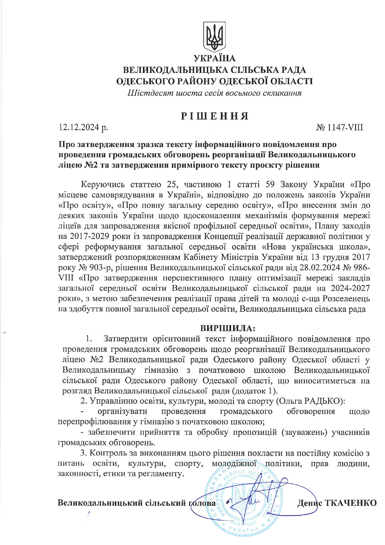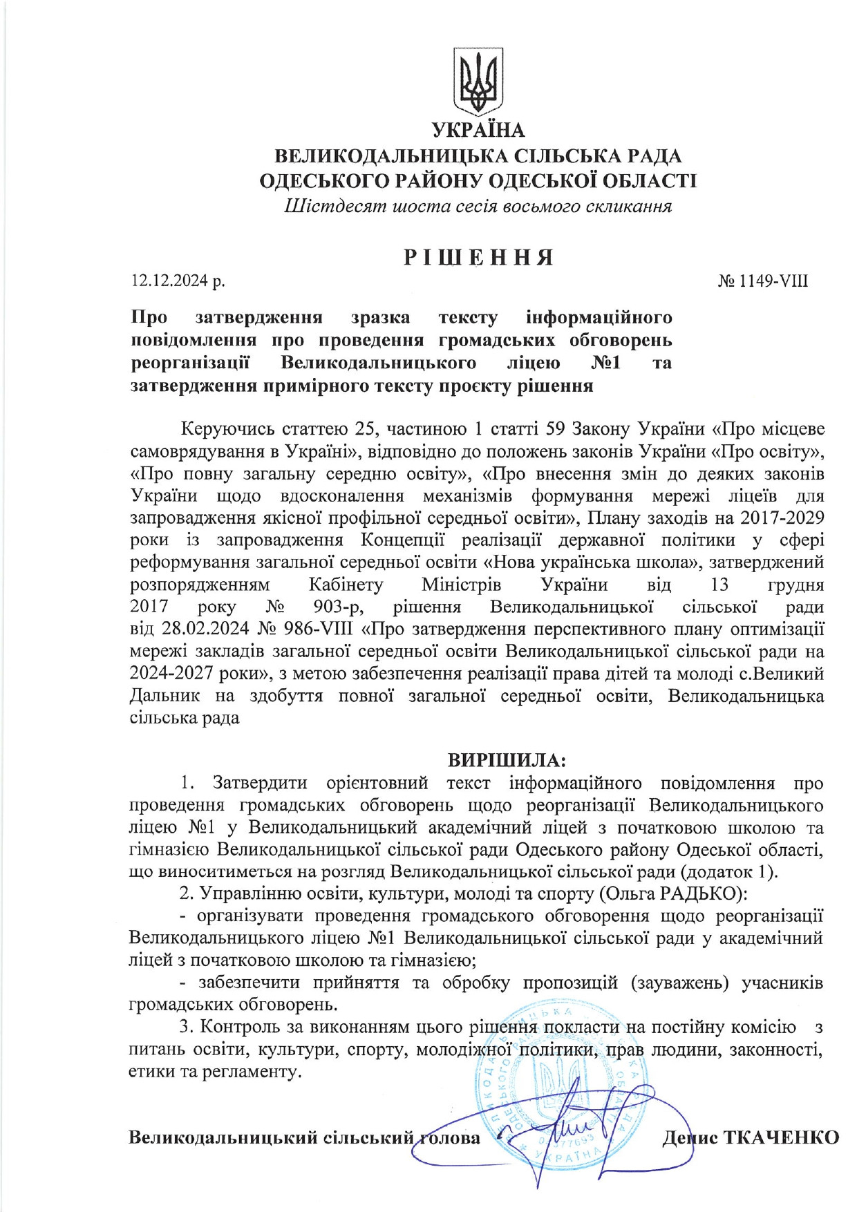 Великодальницький ліцей № 1 Великодальницької сільської ради