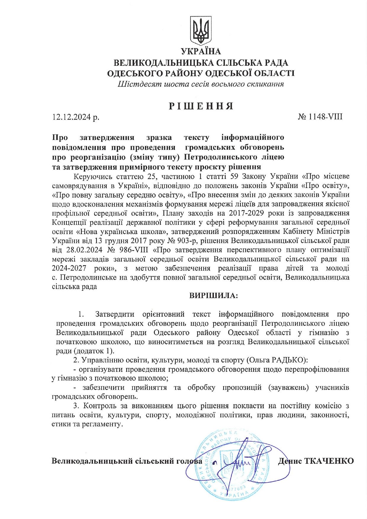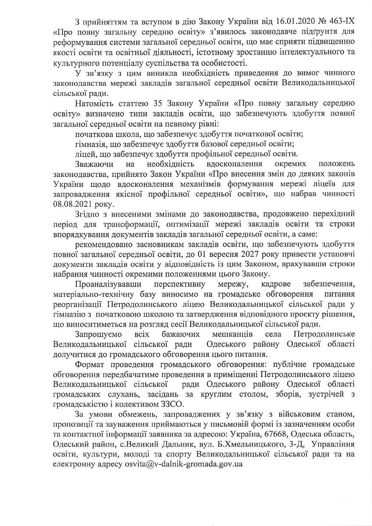 Петродолинський ліцей Великодальницької сільської ради