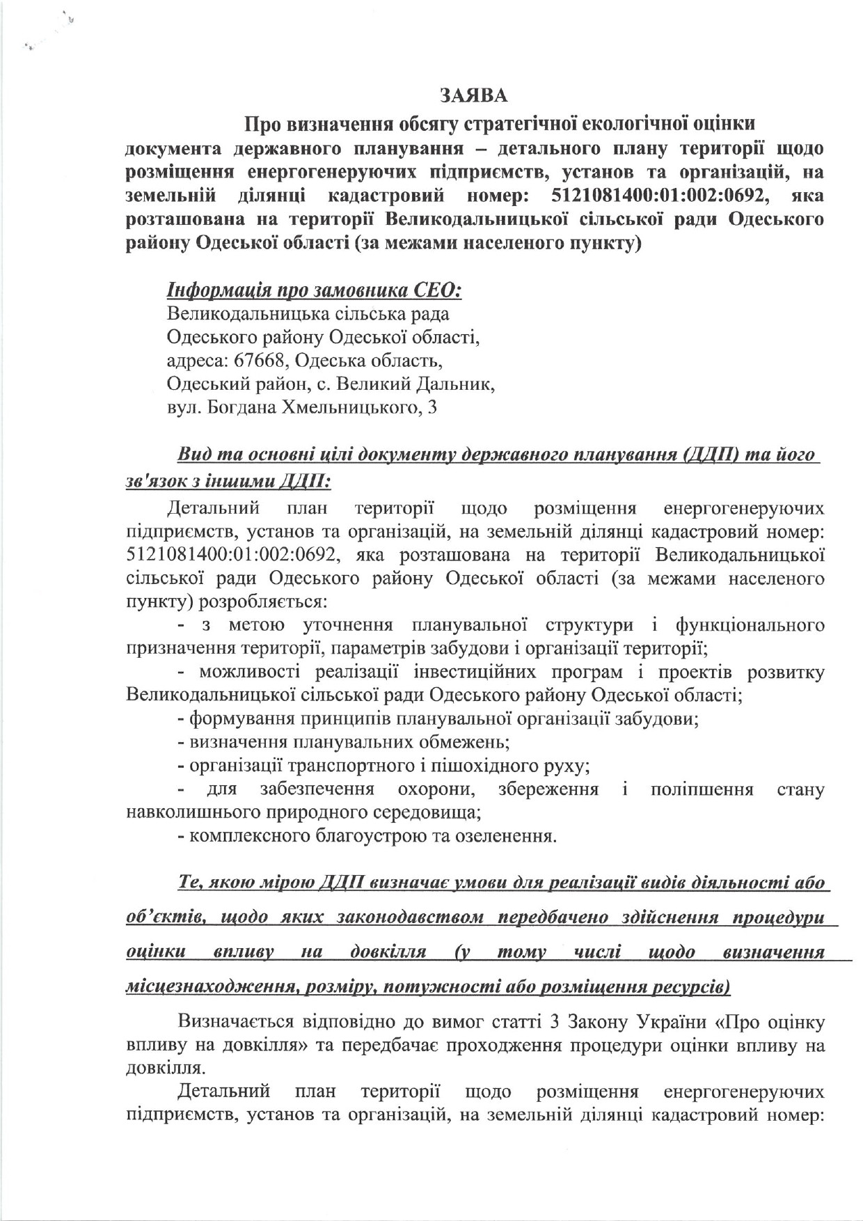 Заяви про визначення обсягу стратегічної екологічної оцінки доку