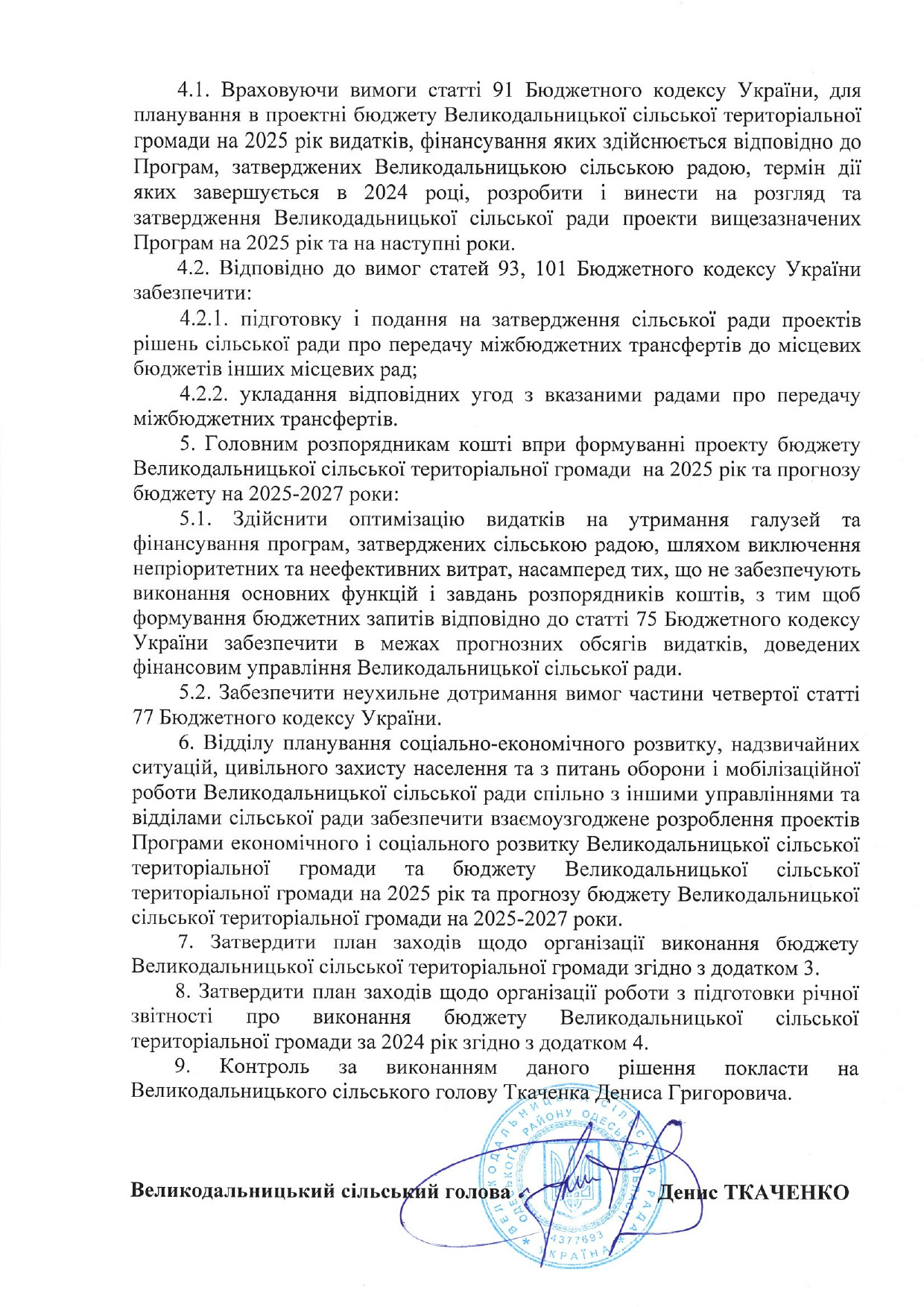 Структура Великодальницької ОТГ