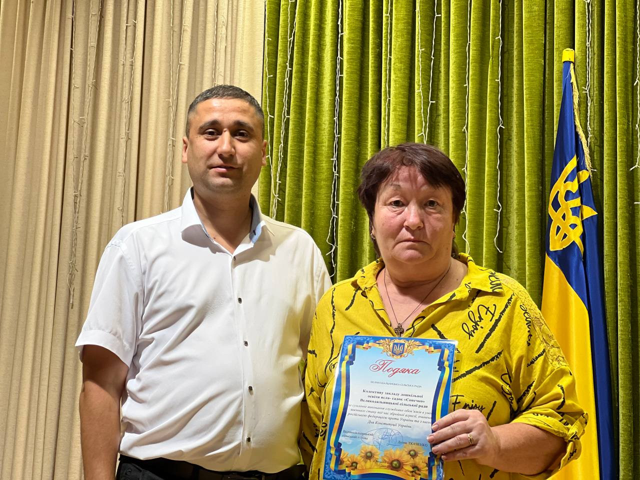 Голова громади також вручив подяки військовослужбовцям та їх родинам, активним жителям, волонтерам села та колективу ЗДО «Сонечко», який невтомно плете маскувальні сітки для наших військових
