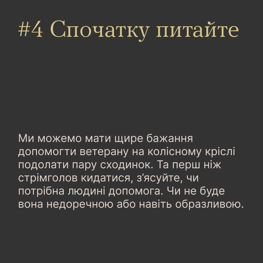 Зустрічаємо молодих, вродливих хлопців і дівчат, а потім помічаємо, що хтось із них втратив ногу чи руку, а дехто й обидві кінцівки. У голові зринає вихор запитань: як поводитися? відвести погляд чи дивитися в очі? як не бовкнути зайвого? може, варто сказати «співчуваю»?