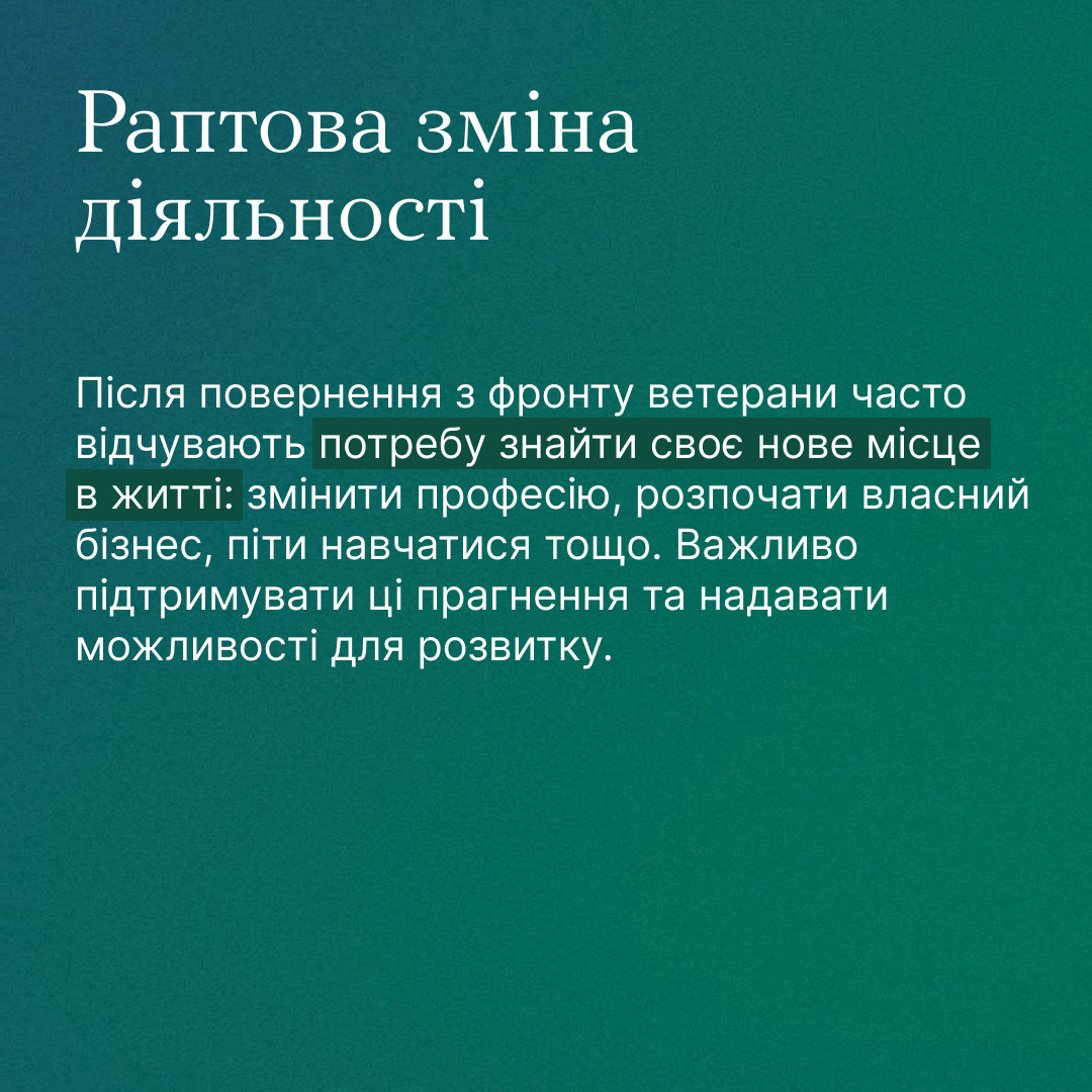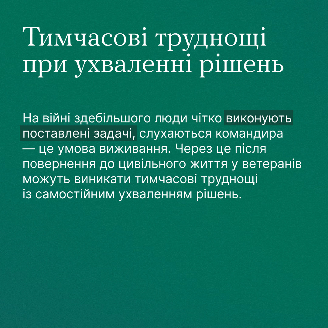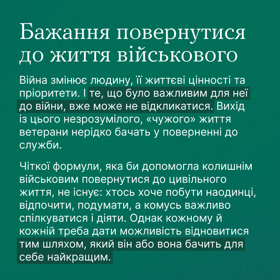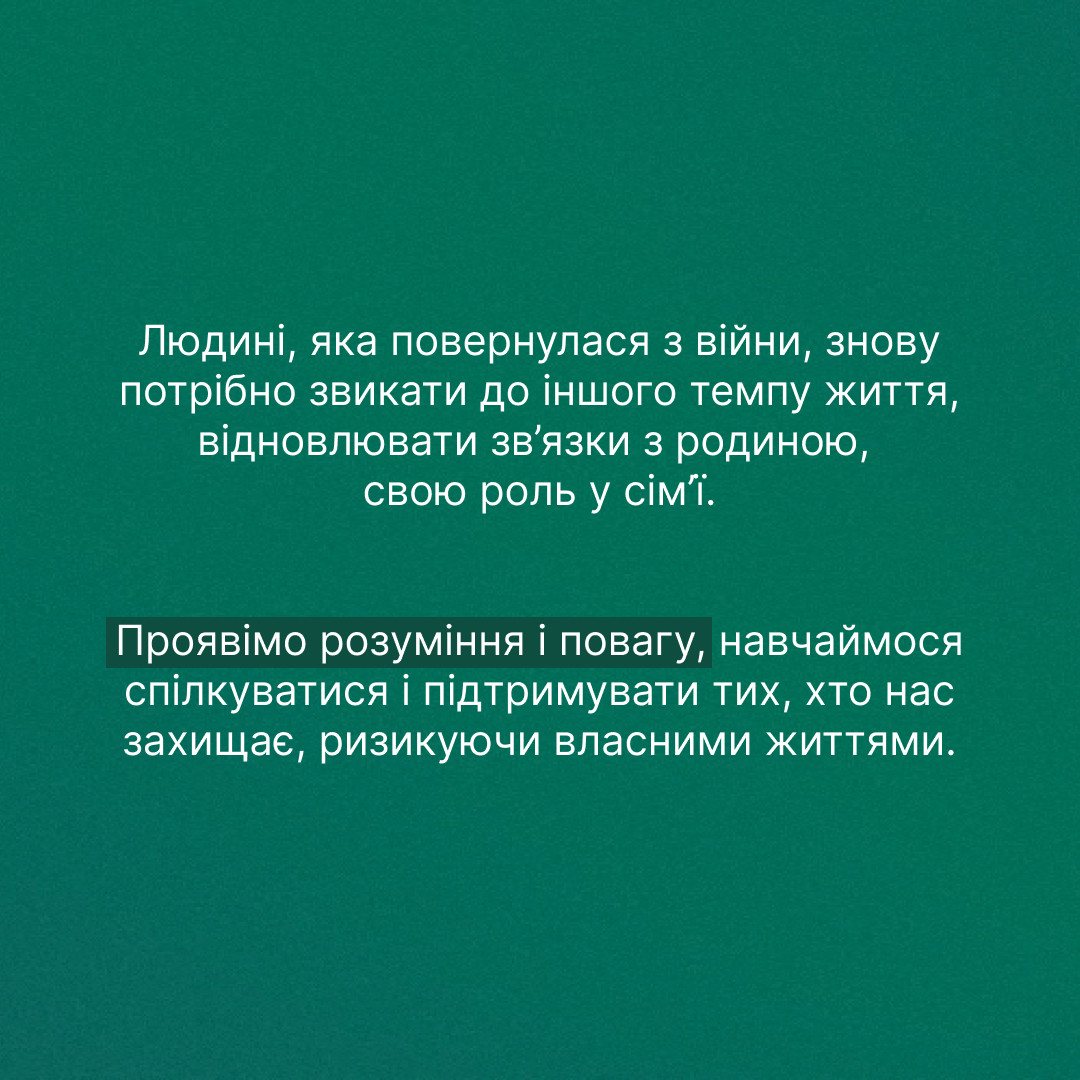 Цивільним важко зрозуміти, через що проходять військові і ветерани, і чому іноді мирне життя для них стає ще більшим випробуванням, ніж бойовий досвід. Чому знайома людина стала такою закритою? Чому агресує, чому відмовляється від допомоги? Ми можемо цього не розуміти, але проявити емпатію — нам під силу.