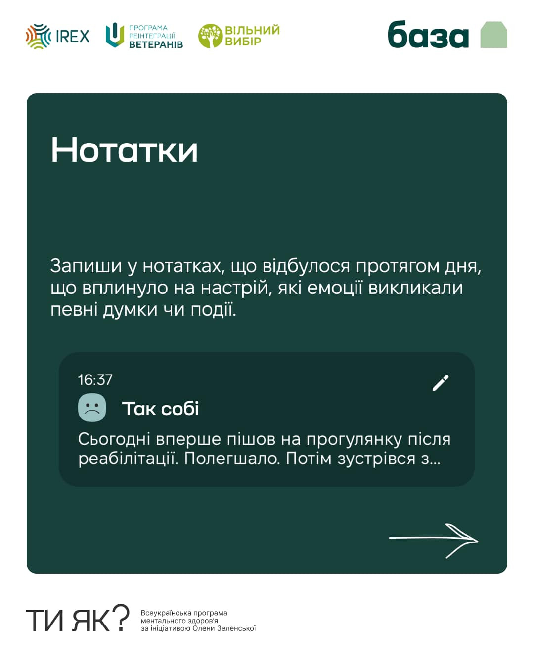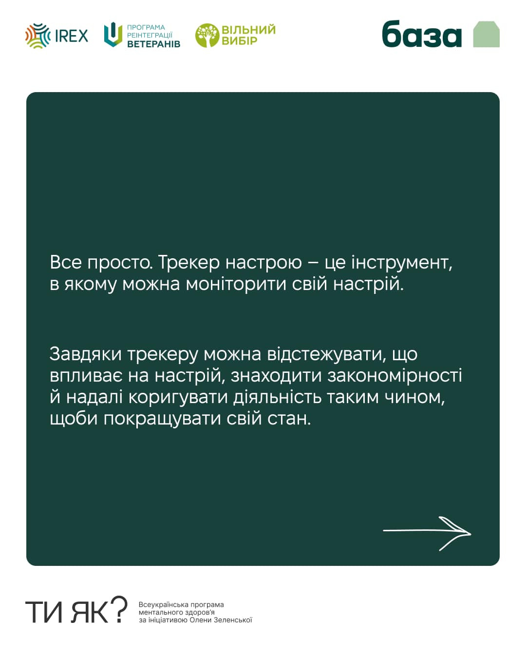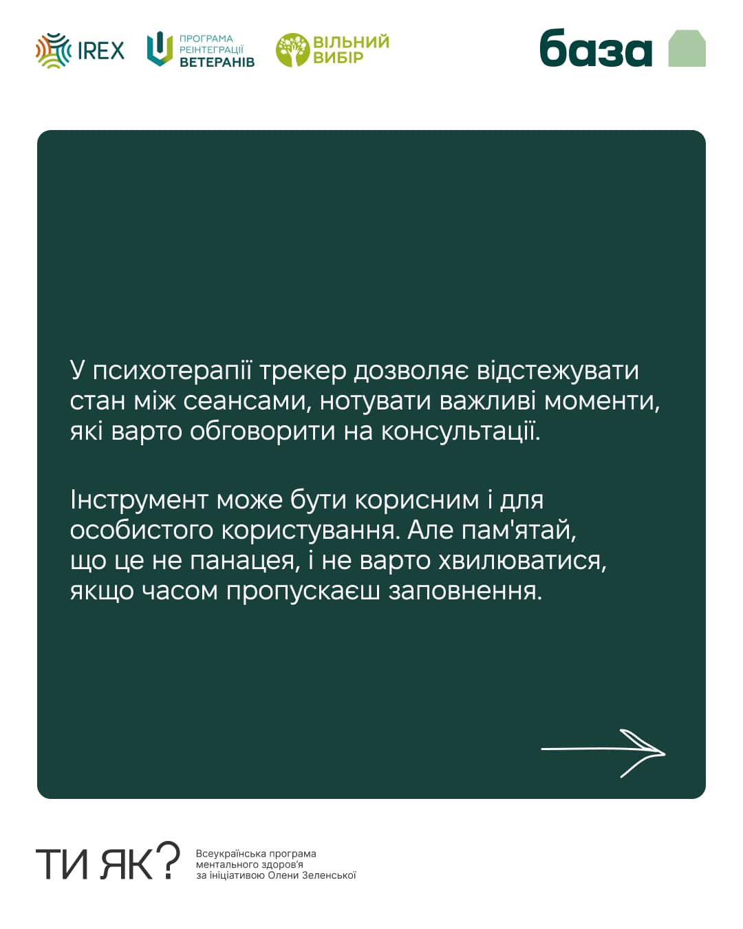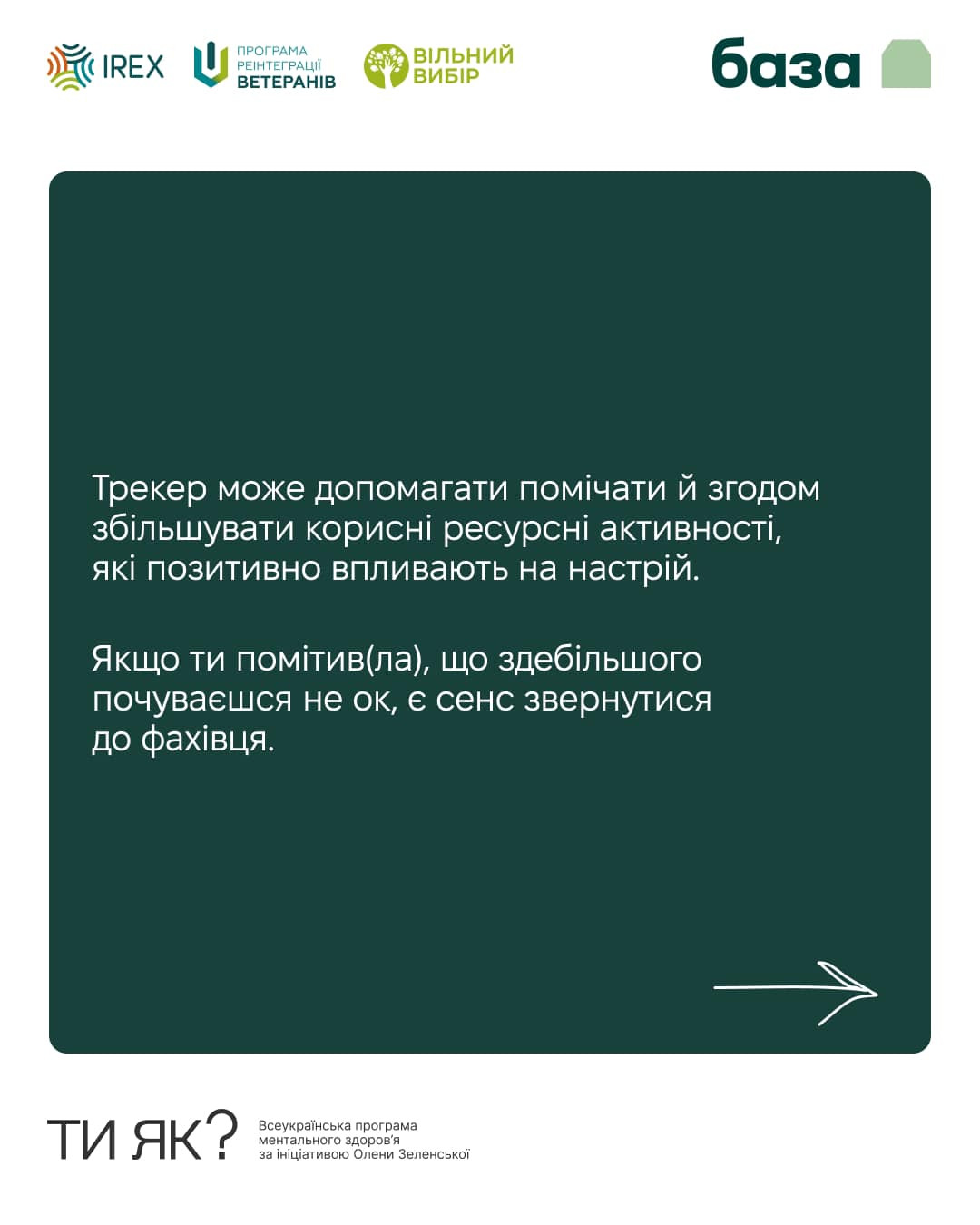Крім трекеру тут знайдеш інші вправи для самодопомоги і можливість поставити питання фахівцю з ментального здоров'я.