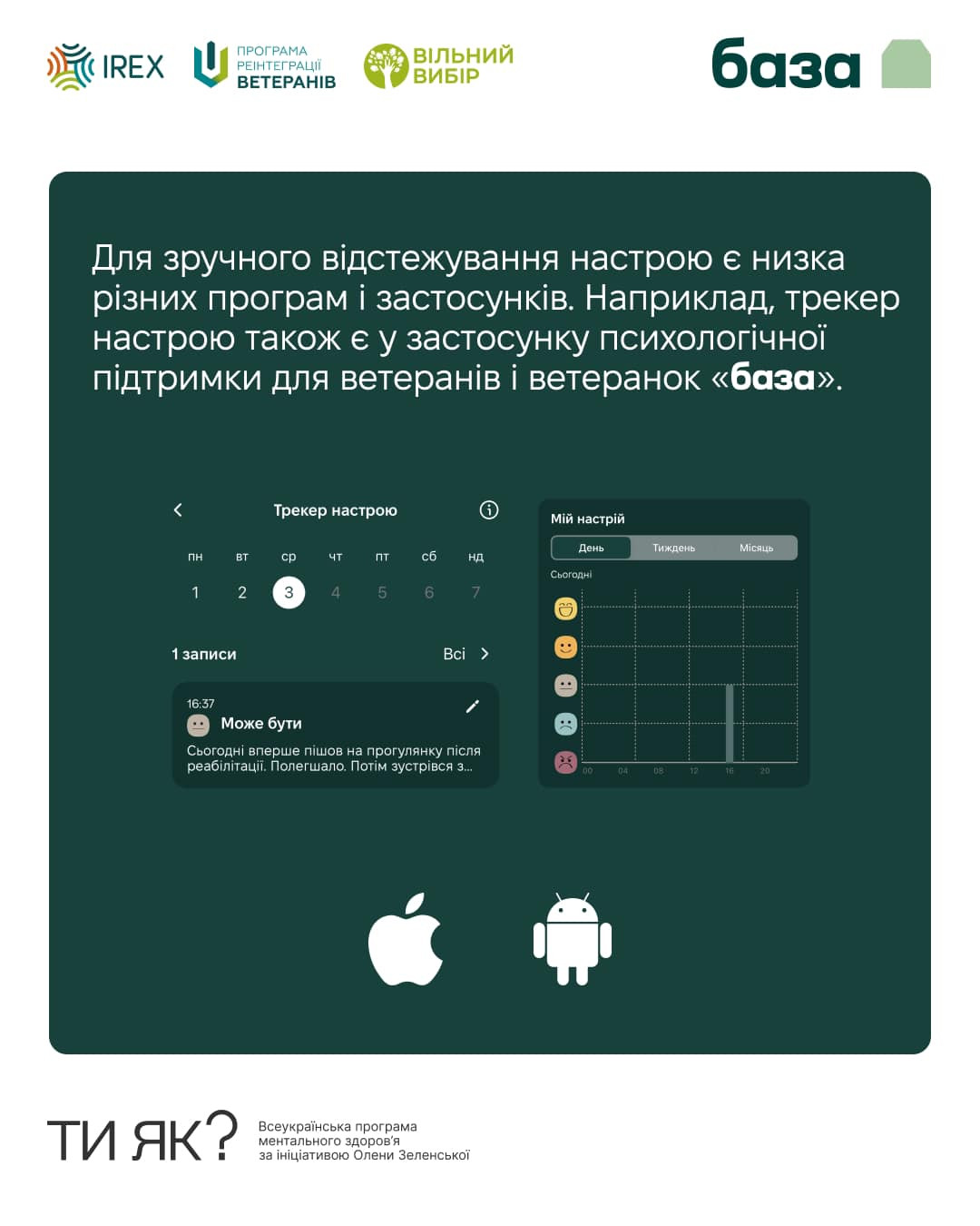 Зручно відстежувати настрій можна у безкоштовному мобільному застосунку психологічної підтримки для ветеранів і ветеранок База