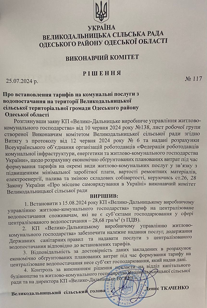 -Наразі у Великодальницькій громаді діють тарифи, затверждені на підставі розрахунків 2021 року, це – 21,94 грн./ куб. м з ПДВ;