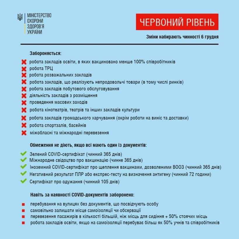 24 листопада Кабінет Міністрів України вніс зміни до Постанови №1236, посиливши карантинні правила, зокрема для невакцинованих громадян.