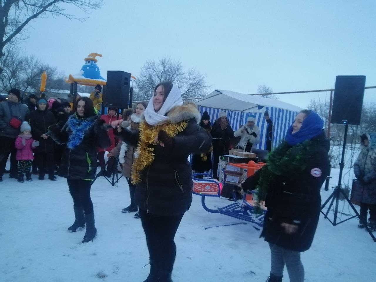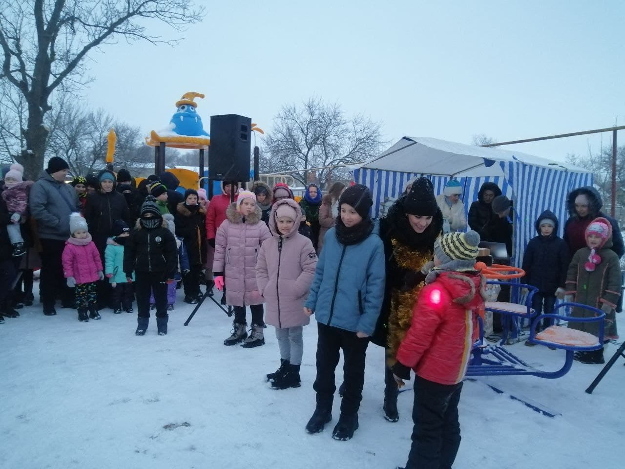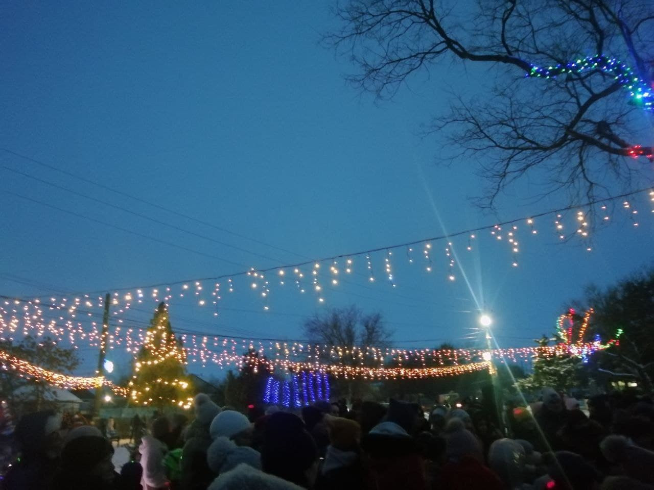 Парк виблискував різнобарвними вогниками, ялинка сяяла, а біля неї красувалися Дід Мороз та Оленята, з якими всі залюбки фотографувалися. А тим часом ведучі розважали дітей та їх батьків конкурсами та веселими іграми. Надзвичайно раділи діти, отримуючи солодкі подарунки. А зігрівали всіх, змушуючи підтанцьовувати, артисти, які співали запальні новорічні пісні.