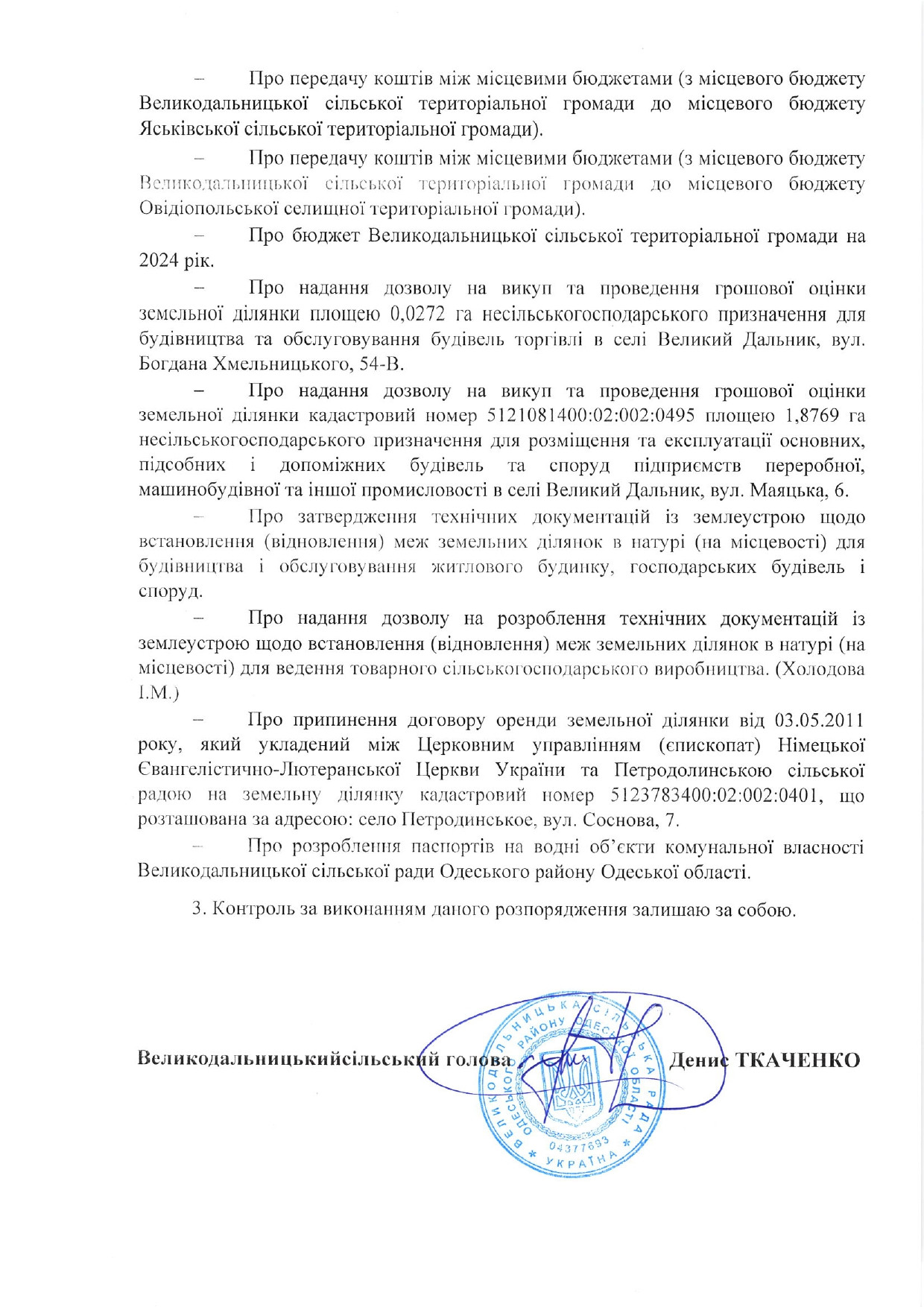 21 грудня 2023 року відбудеться засідання чергової 53 сесії Великодальницької сільської ради восьмого скликання.