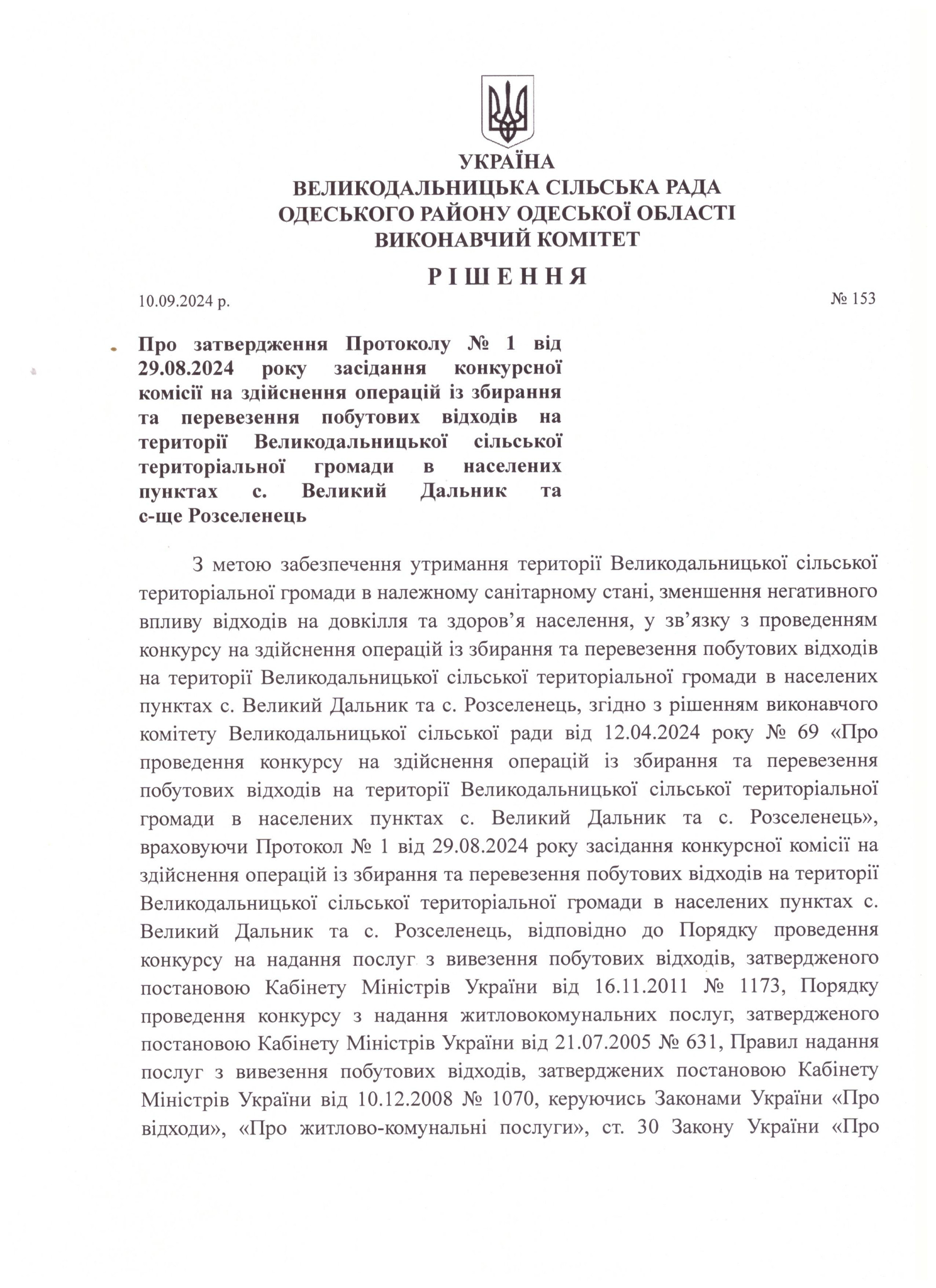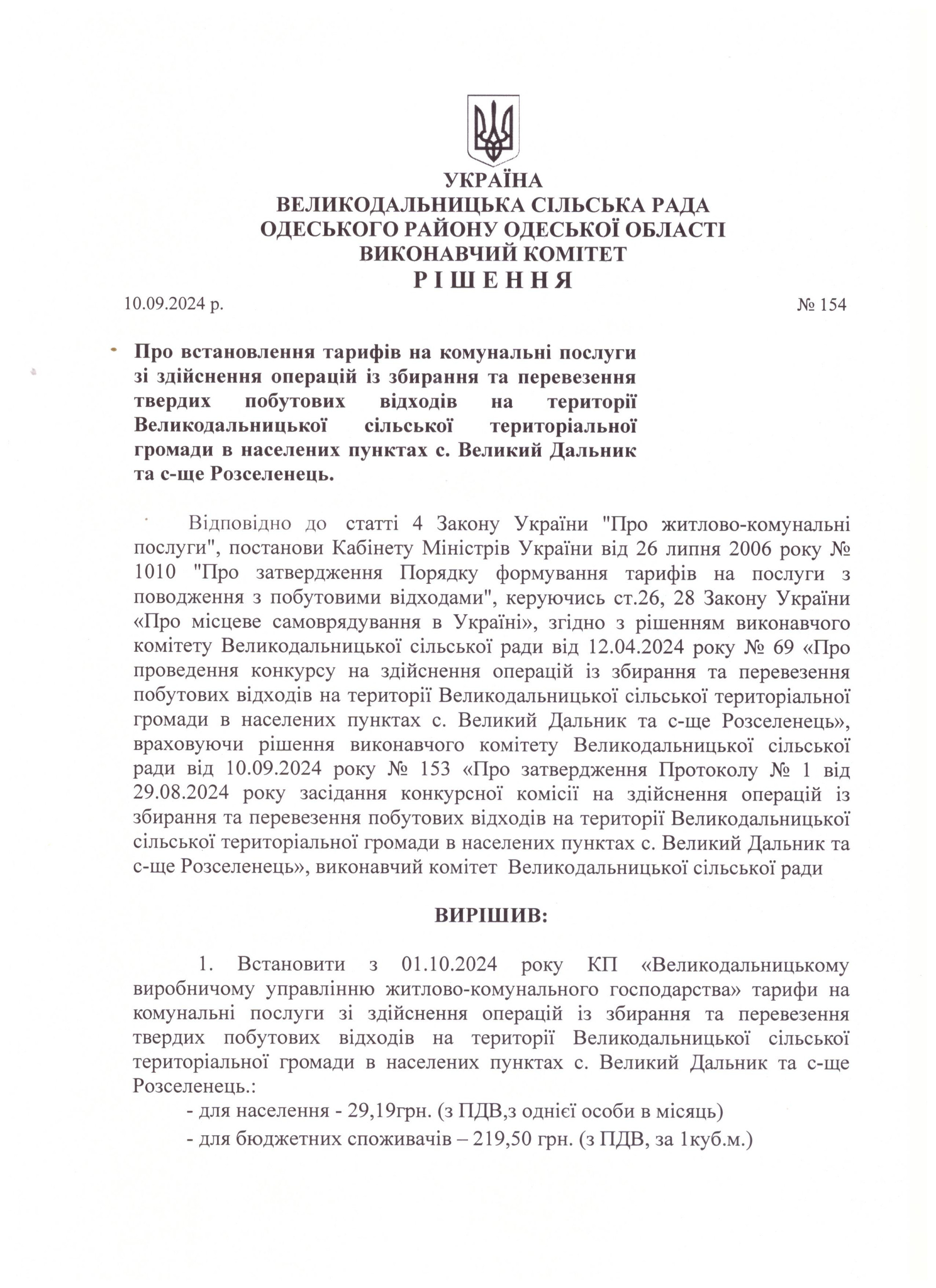 Встановлення тарифів на вивіз ТПВ