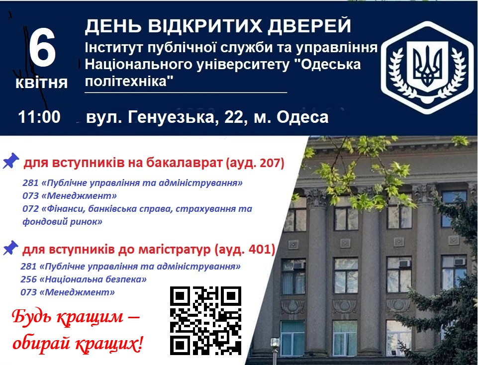 Навчально-науковий інститут публічної служби та управління Національного університету «Одеська політехніка» продовжує свою діяльність з підготовки та підвищення кваліфікації кадрів для роботи в органах публічної влади, підприємствах, організаціях, комерційних структурах.