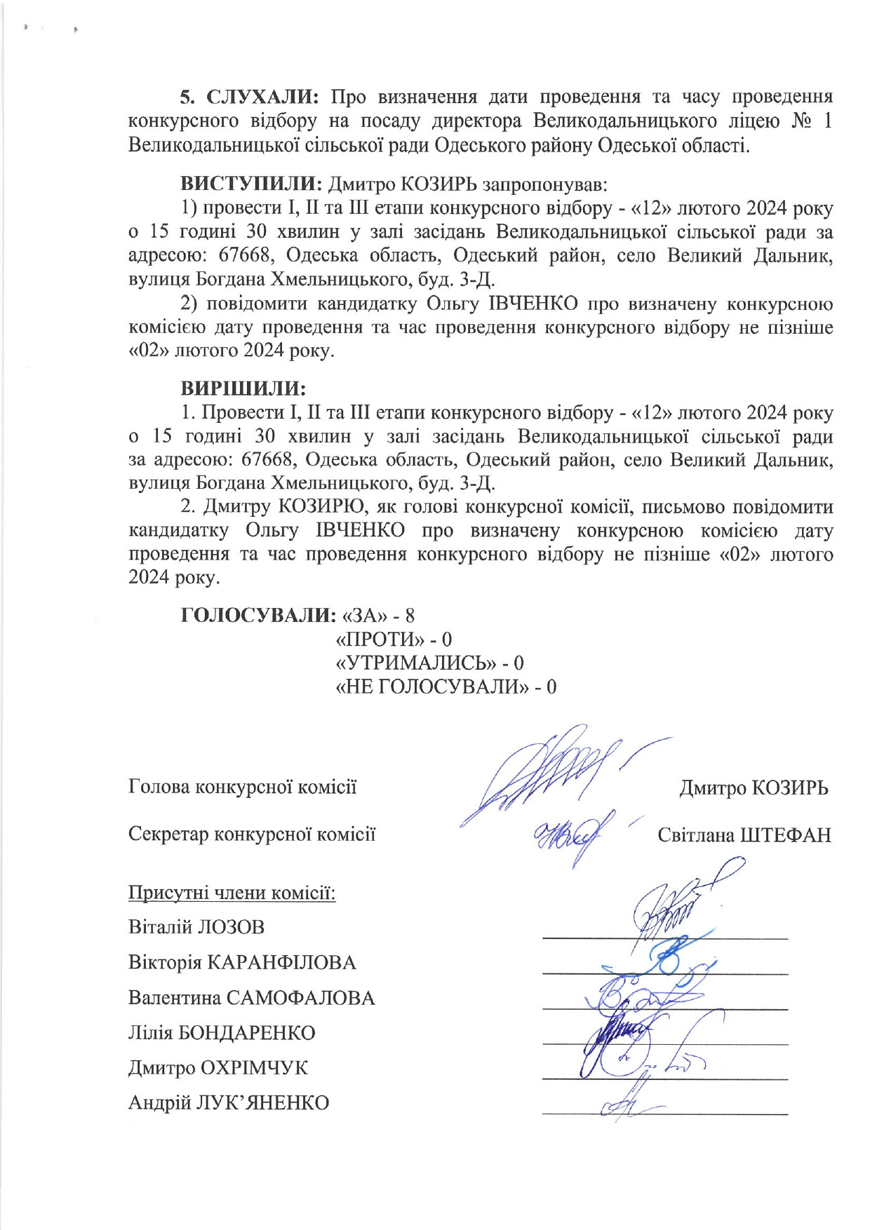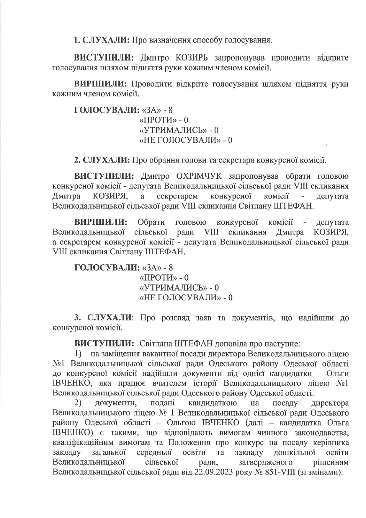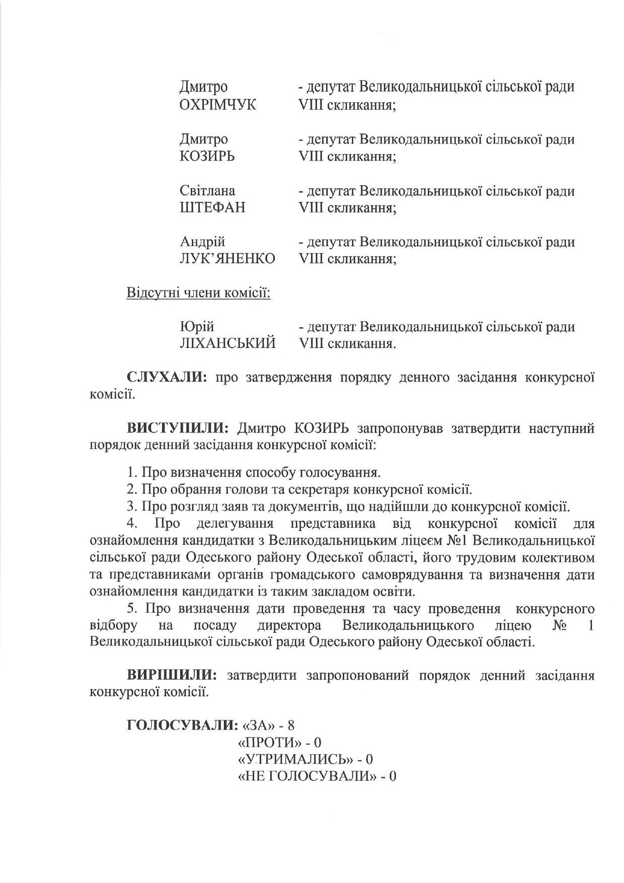 Засідання конкурсної комісії для проведення конкурсу на заміщення вакантної посади директора Великодальницького ліцею №1